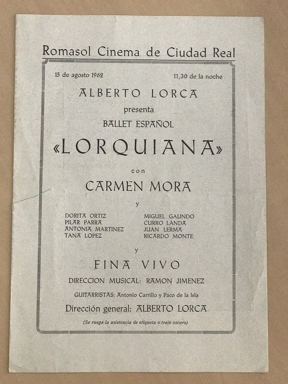 El Fondo Alberto Lorca contiene diverso material fotográfico, cerca de 600 documentos, que incluye retratos de Alberto Lorca en diferentes momentos de su vida, instantáneas de algunas de las obras de teatro y películas para las que realizó coreografías, fotografías de ensayos y representaciones de ballets de su autoría, así como posados con numerosos personajes de la sociedad y la cultura española asistentes a sus espectáculos.