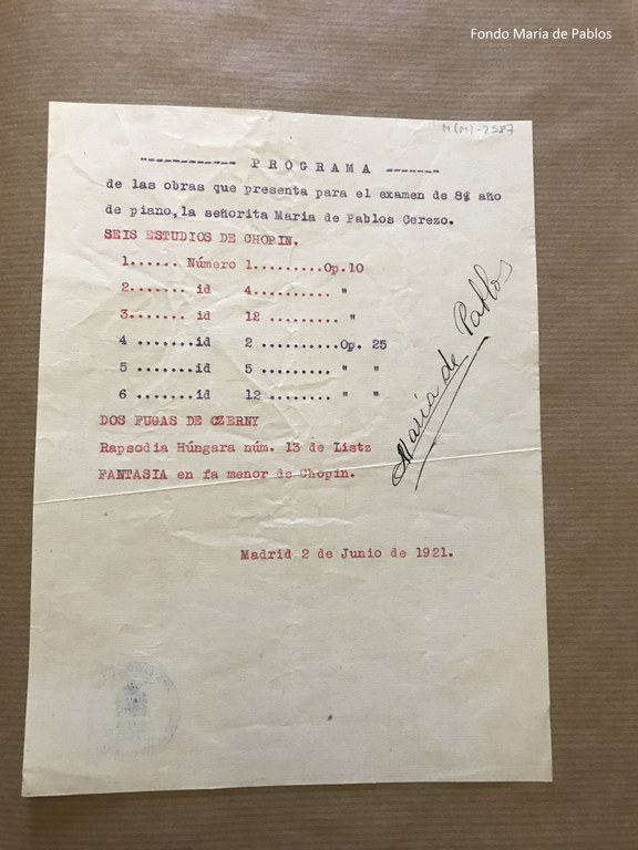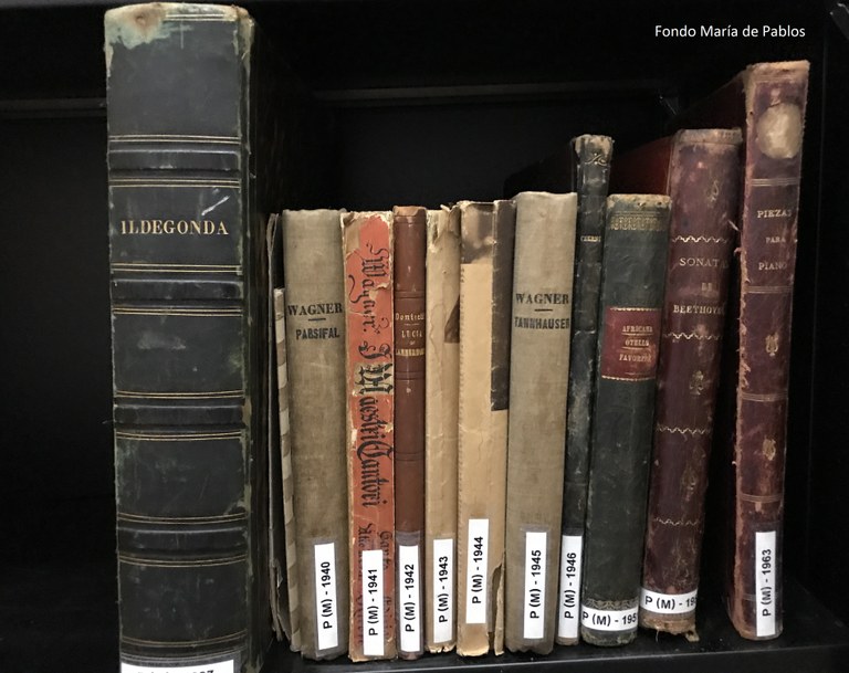 El Fondo María de Pablos se encuentra parcialmente digitalizado: las partituras manuscritas de la autora se hallan disponibles en formato digital y el resto de materiales están a disposición de los usuarios para la consulta en sala.